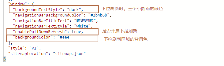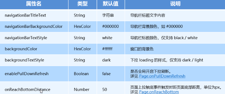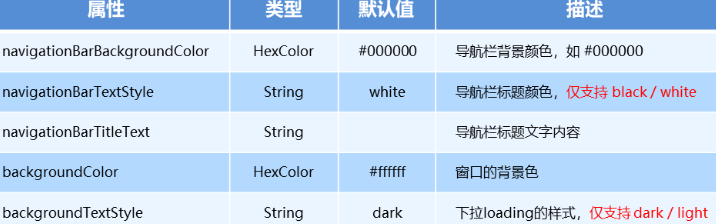 2. window 对象:用于设置小程序的状态栏,导航条,标题,窗口背景色