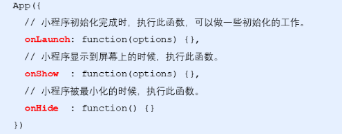 app(Object)函数接受一个Object参数,可以通过这个Object参数,指定小程序的生命周期函数。