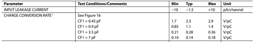 由此可得,运放的输出电压等于对输入电压在时间上的积分。若输入端为电荷采集装置的话,那么运放的输出与输入端的电荷量成正比。两部分组合起来就是电荷积分放大器。