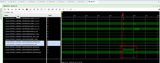 在花费了一个月的时间,才定位到某个FIFO出现异常。为更加细致地确认是FIFO哪里出错,使用ILA抓取FIFO的信号,包括写使能、复位、空指示信号等。