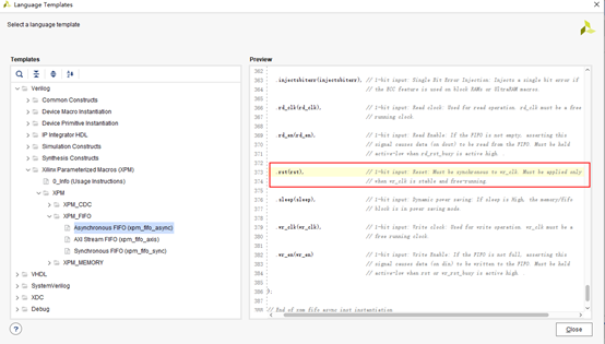 vivodo-PROJECT MANAGER-Language Templates-Verilog-Xilinx Parameterized Macros(XPM)-XPM-XPM_FIFO-Asynchronous FIFO (xpm_ fifo async)。