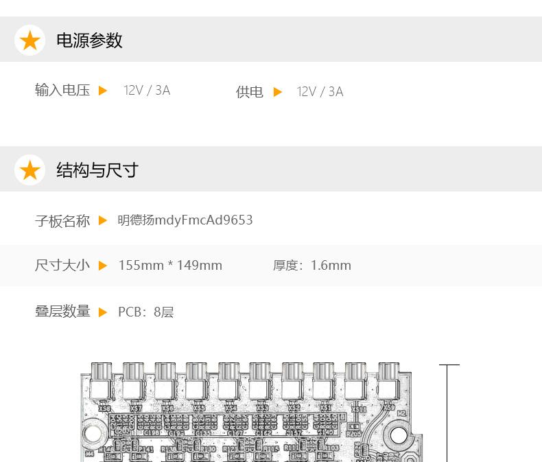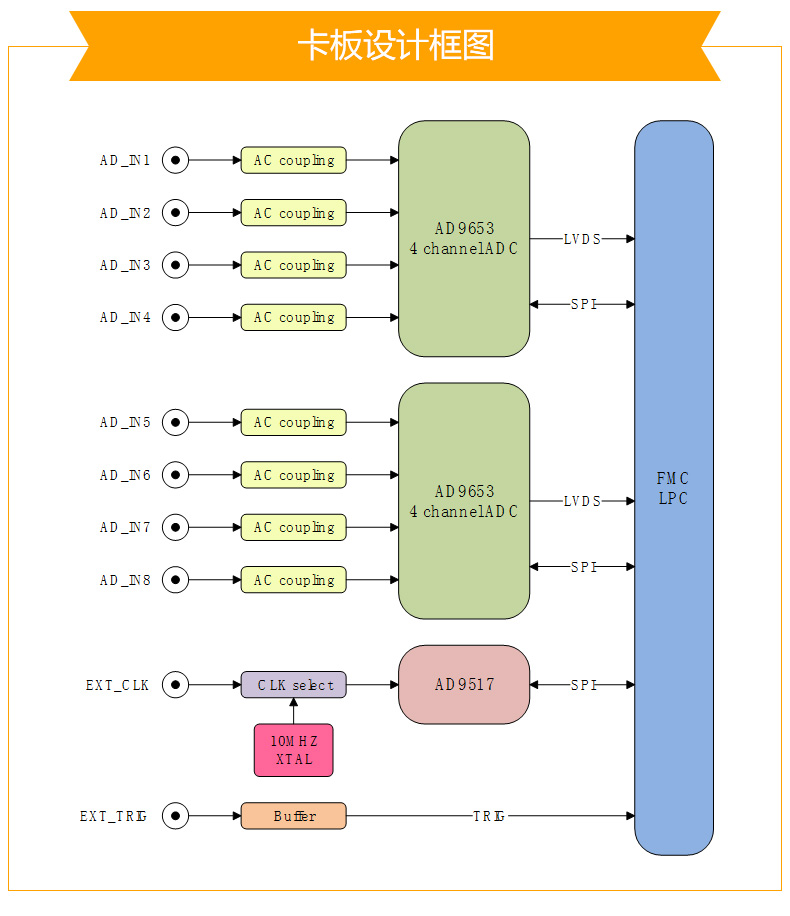 明德扬ADC系列开发板-Ad9653子板 多通道 高分辨率 高采样率