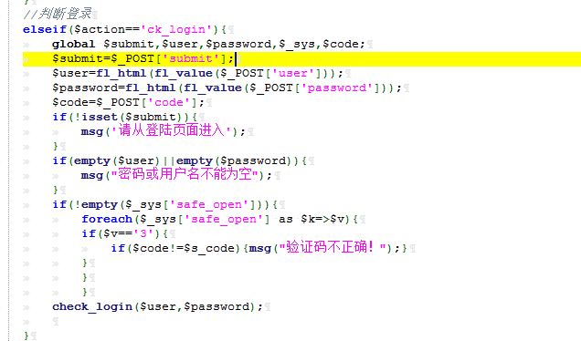 之后对于user、password进行了赋值,值得注意的是fl_value、fl_html这两个函数,经过定位发现是过滤。