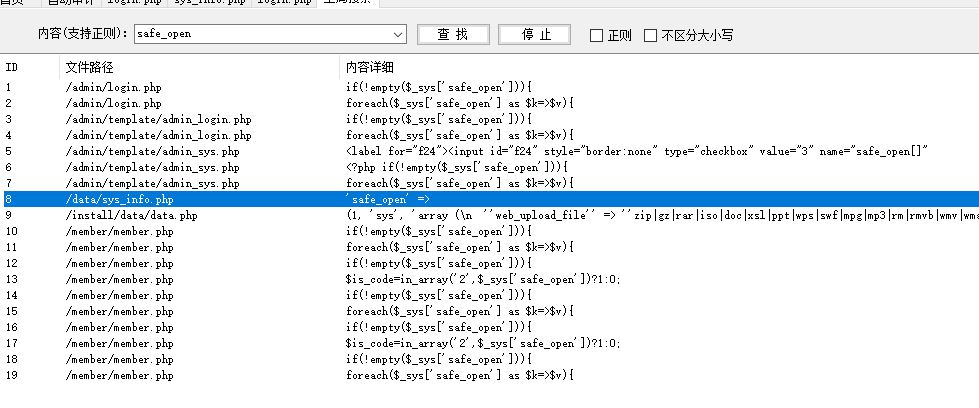 直接全局搜索sys的话会搜索出来很多,这里作者选择全局搜索safe_open
