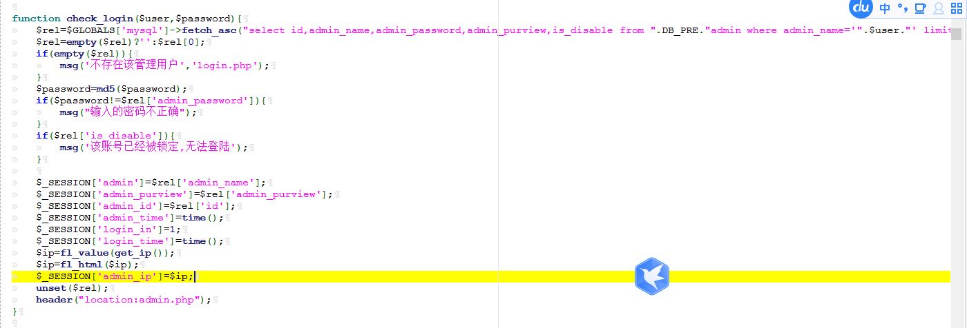最后使用check_login($user,$password)传递参数开始了对比数据库。