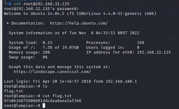 hydra -l tiago -P baji.txt 192.168.32.135 ssh