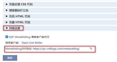 设置 –> 博客设置 --> 其他设置 --> MetaWeblog访问地址