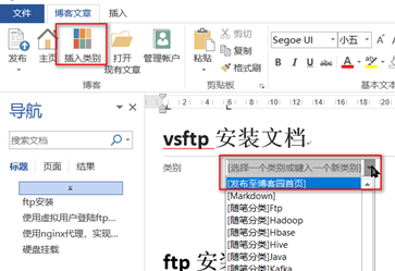 账号配置好后选择插入类别,可以设置待发布文档的分类标签