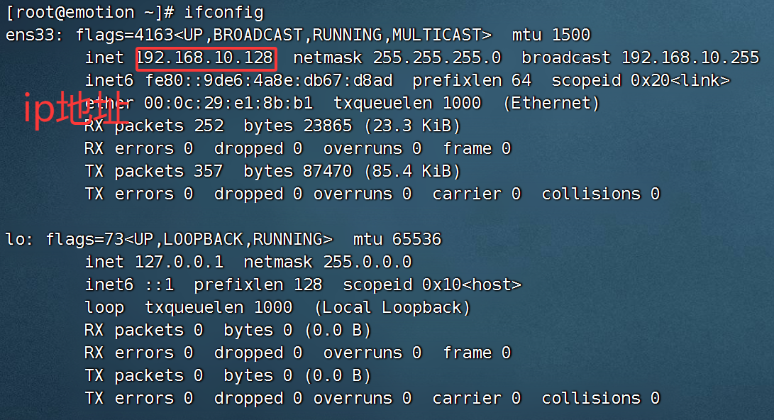 ifconfig / ip addr:查看ip地址,不要与windows系统弄混淆,windows为ipconfig