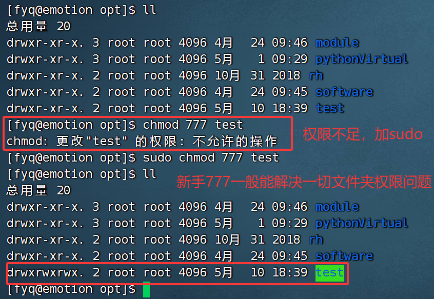 chmod:修改文件权限,755足以,慎用777,演示时用的777,777等于开放所有权限,755等于所有者有读写操作,所属组和其他用户无写操作