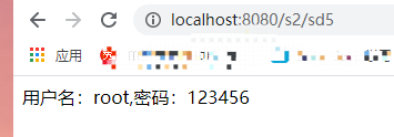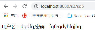 username = root password = 123456protected void doGet(HttpServletRequest req, HttpServletResponse resp) throws ServletException, IOException { InputStream stream = this.getServletContext().getResourceAsStream("/WEB-INF/classes/db.properties"); Properties properties = new Properties(); properties.load(stream); resp.setContentType("text/html"); resp.setCharacterEncoding("utf-8"); String name = properties.getProperty("username"); String pwd = properties.getProperty("password"); resp.getWriter().print("用户名:" + name + ",密码:" + pwd); }<servlet> <servlet-name>sd5</servlet-name> <servlet-class>com.shida.servlet.ServletDemo05</servlet-class> </servlet> <servlet-mapping> <servlet-name>sd5</servlet-name> <url-pattern>/sd5</url-pattern> </servlet-mapping>测试结果为