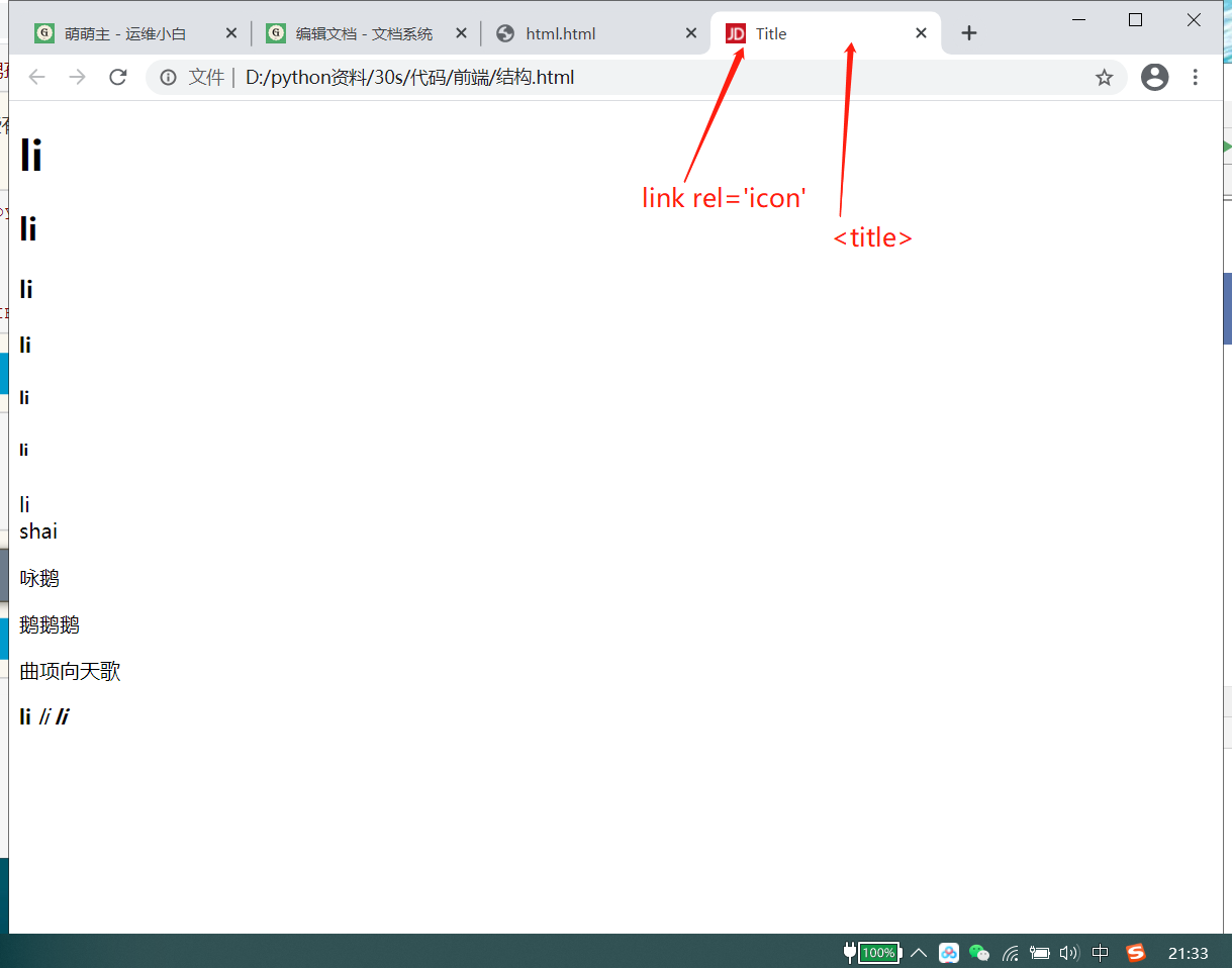 <link rel="icon" href="https://www.jd.com/favicon.ico"> <!--定义标题图片-->