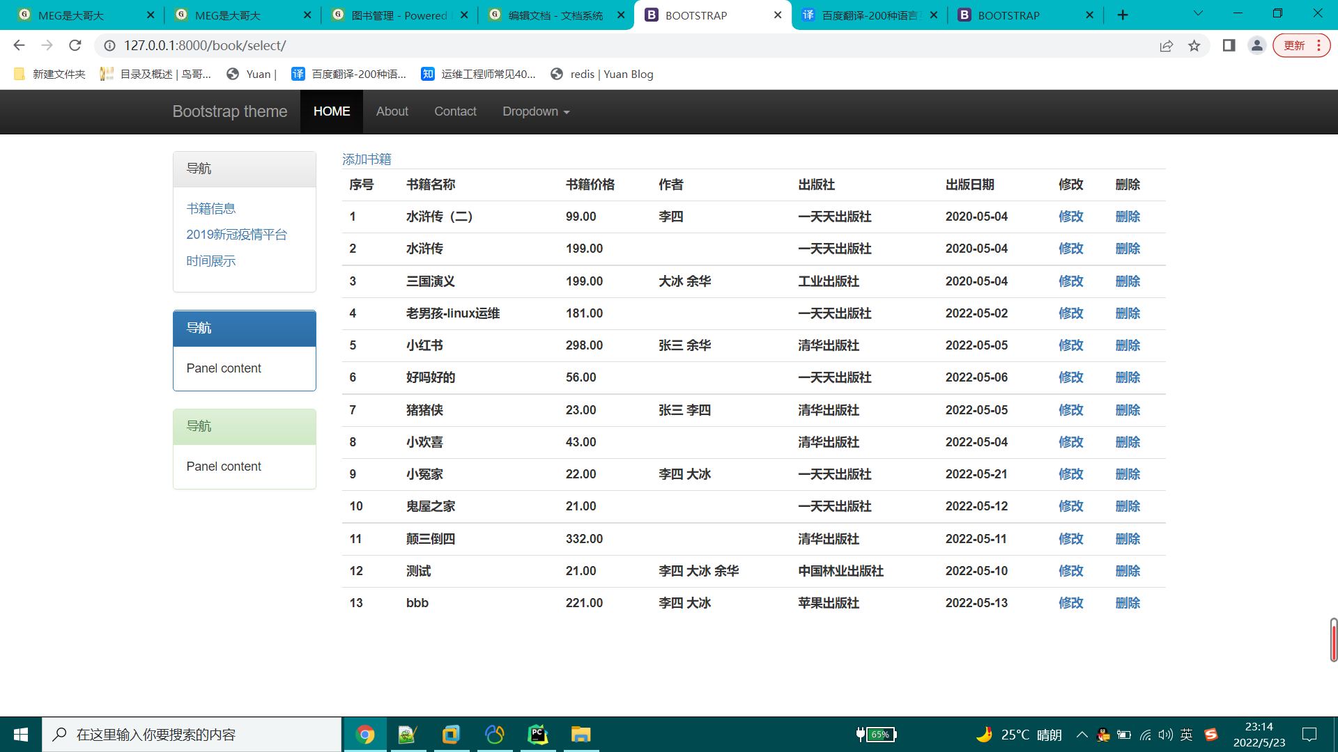 功能:图书(作者/出版社/书籍)增删改查功能