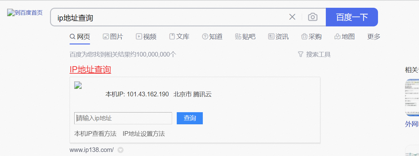 url = "http://www.baidu.com/s?ie=utf-8&f=8&tn=baidu&wd=ip%E5%9C%B0%E5%9D%80%E6%9F%A5%E8%AF%A2&oq=ip%25E5%259C%25B0%25E5%259D%2580%25E6%259F%25A5%25E8%25AF%25A2"