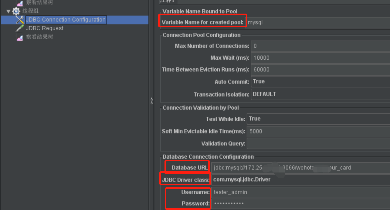 configuration,每个可以起个不同的名称,在jdbc request中可以通过这个名称选择合适的连接池进行使用。