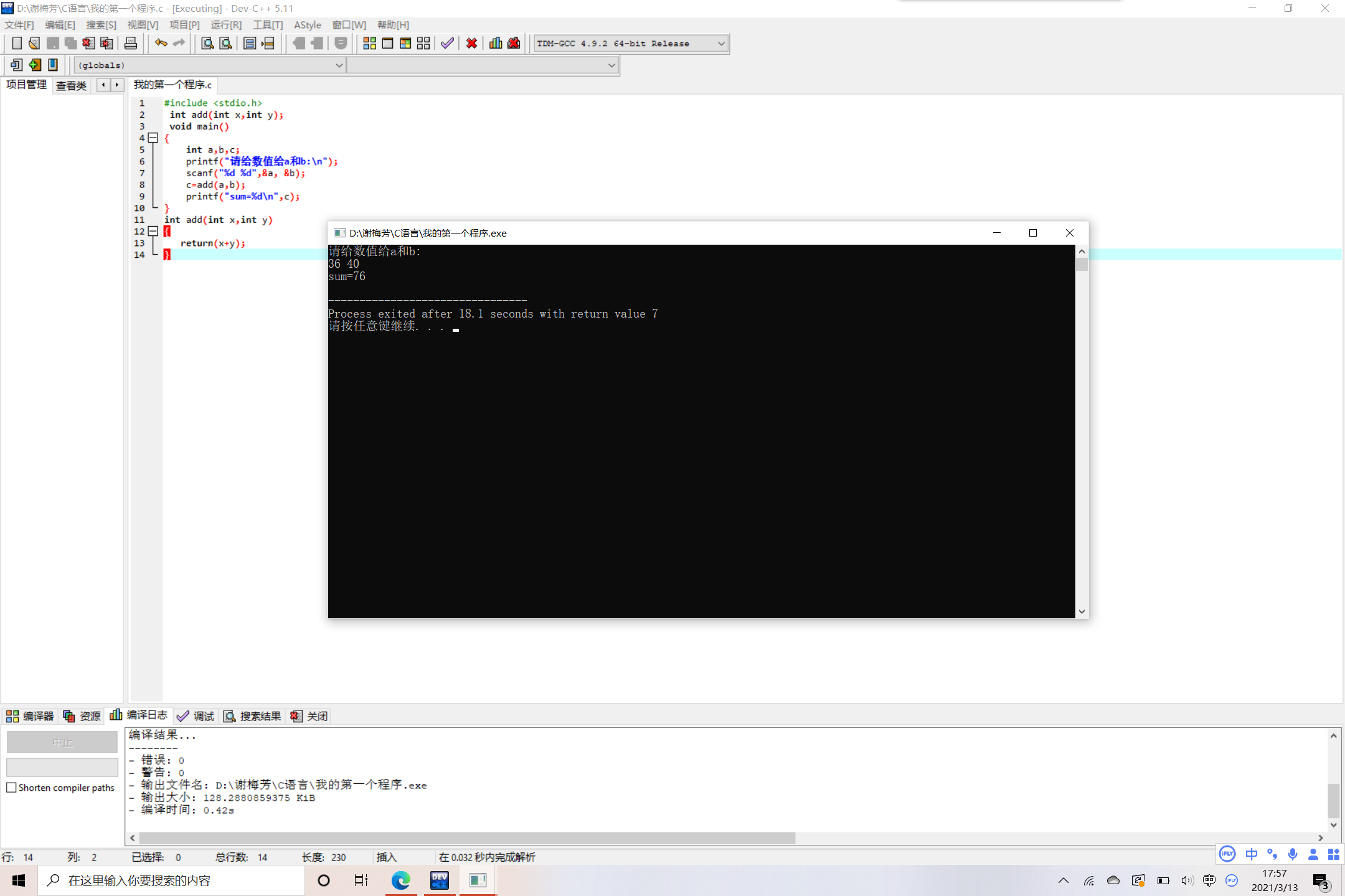 <2>因为现在初接触C语言,感觉有点吃力,但也挺有趣的。