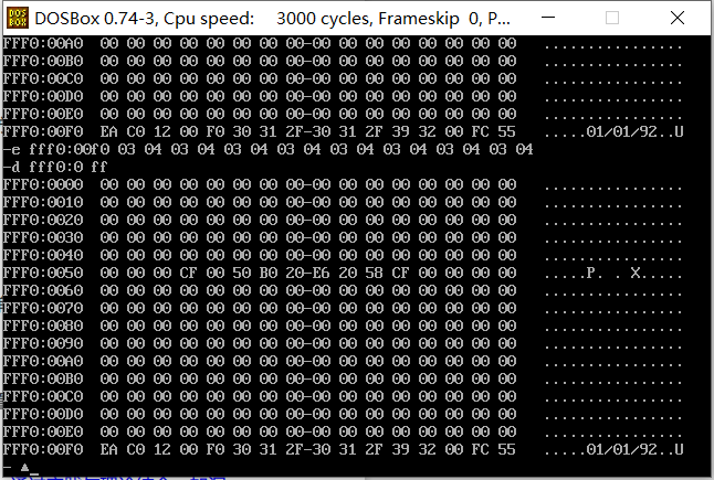 使用e修改生产日期所在的存储单元后,再次用d命令查看:
