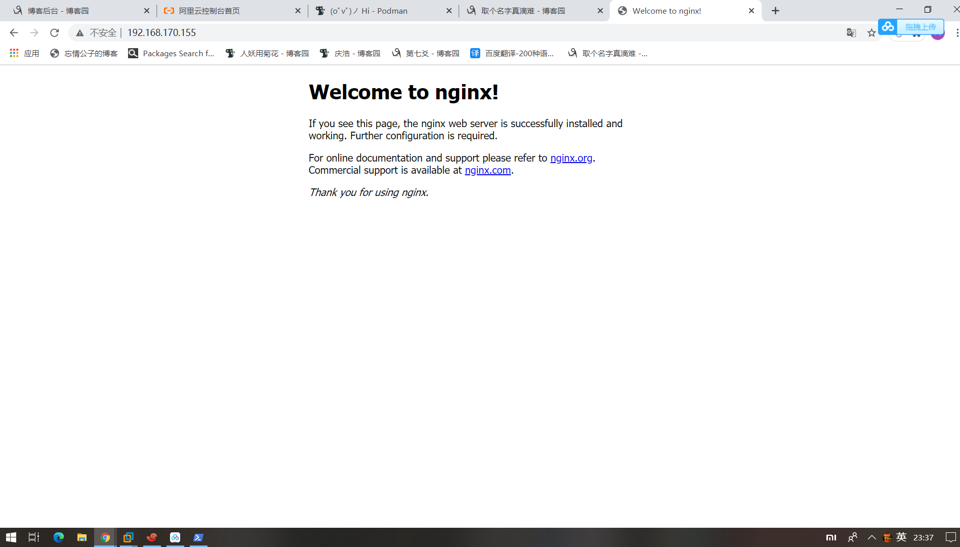 [mei@localhost ~]$ podman run -d --name web4 -p 80:80 nginx Error: rootlessport cannot expose privileged port 80, you can add 'net.ipv4.ip_unprivileged_port_start=80' to /etc/sysctl.conf (currently 1024), or choose a larger port number (>= 1024): listen tcp 0.0.0.0:80: bind: permission denied [root@localhost ~]# vim /etc/sysctl.conf # sysctl settings are defined through files in # /usr/lib/sysctl.d/, /run/sysctl.d/, and /etc/sysctl.d/. # # Vendors settings live in /usr/lib/sysctl.d/. # To override a whole file, create a new file with the same in # /etc/sysctl.d/ and put new settings there. To override # only specific settings, add a file with a lexically later # name in /etc/sysctl.d/ and put new settings there. # # For more information, see sysctl.conf(5) and sysctl.d(5). net.ipv4.ip_unprivileged_port_start=80 ~ ~ [root@localhost ~]# sysctl -p 重新加载一下 net.ipv4.ip_unprivileged_port_start = 80 [mei@localhost ~]$ podman start web4 web4 [mei@localhost ~]$ podman ps -a CONTAINER ID IMAGE COMMAND CREATED STATUS PORTS NAMES a482e75c2a5b docker.io/library/nginx:latest nginx -g daemon o... 7 minutes ago Up 21 seconds ago 0.0.0.0:80->80/tcp web4 cda68e999612 docker.io/library/busybox:latest /bin/sh 2 hours ago Exited (0) 2 hours ago jolly_moore [mei@localhost ~]$ ss -antl State Recv-Q Send-Q Local Address:Port Peer Address:Port LISTEN 0 128 0.0.0.0:22 0.0.0.0:* LISTEN 0 128 *:80 *:* LISTEN 0 128 [::]:22 [::]:* [mei@localhost ~]$ curl 192.168.170.155 <!DOCTYPE html> <html> <head> <title>Welcome to nginx!</title> <style> body { width: 35em; margin: 0 auto; font-family: Tahoma, Verdana, Arial, sans-serif; } </style> </head> <body> <h1>Welcome to nginx!</h1> <p>If you see this page, the nginx web server is successfully installed and working. Further configuration is required.</p> <p>For online documentation and support please refer to <a href="http://nginx.org/">nginx.org</a>.<br/> Commercial support is available at <a href="http://nginx.com/">nginx.com</a>.</p> <p><em>Thank you for using nginx.</em></p> </body> </html>