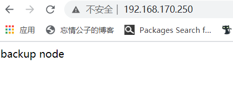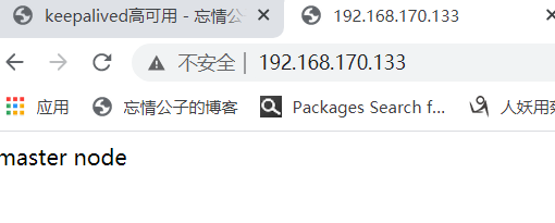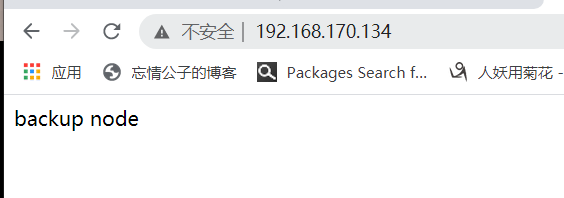 [root@master ~]# yum install -y nginx [root@master ~]# systemctl start nginx [root@master ~]# ss -antl State Recv-Q Send-Q Local Address:Port Peer Address:Port LISTEN 0 128 0.0.0.0:80 0.0.0.0:* LISTEN 0 128 0.0.0.0:22 0.0.0.0:* LISTEN 0 128 [::]:80 [::]:* LISTEN 0 128 [::]:22 [::]:* [root@master ~]# cd /usr/share/nginx/html/ [root@master html]# echo "master node" > index.html [root@slave ~]# yum install -y nginx [root@slave ~]# systemctl start nginx [root@slave ~]# ss -antl State Recv-Q Send-Q Local Address:Port Peer Address:Port LISTEN 0 128 0.0.0.0:80 0.0.0.0:* LISTEN 0 128 0.0.0.0:22 0.0.0.0:* LISTEN 0 128 [::]:80 [::]:* LISTEN 0 128 [::]:22 [::]:* [root@slave ~]# cd /usr/share/nginx/html/ [root@slave html]# echo "backup node" > index.html
