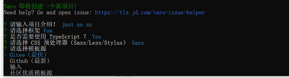 tip:TypeScript那里要选择yes不然在后面的引入ui时会出现报错,如果未选择,后者可在babel.config.js文件中修改:
