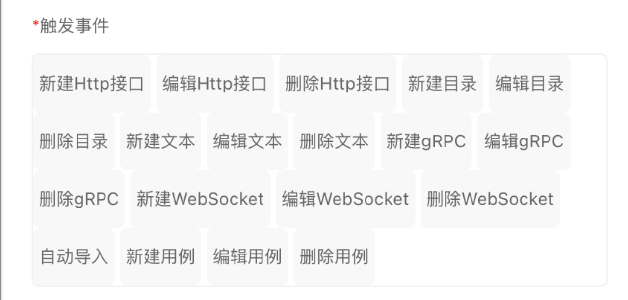 自定义触发条件: 用户可以根据自己的需求,设置不同的触发条件。如下图:配置后如果某个团队成员新建了一个API,就会触发API新建通知。