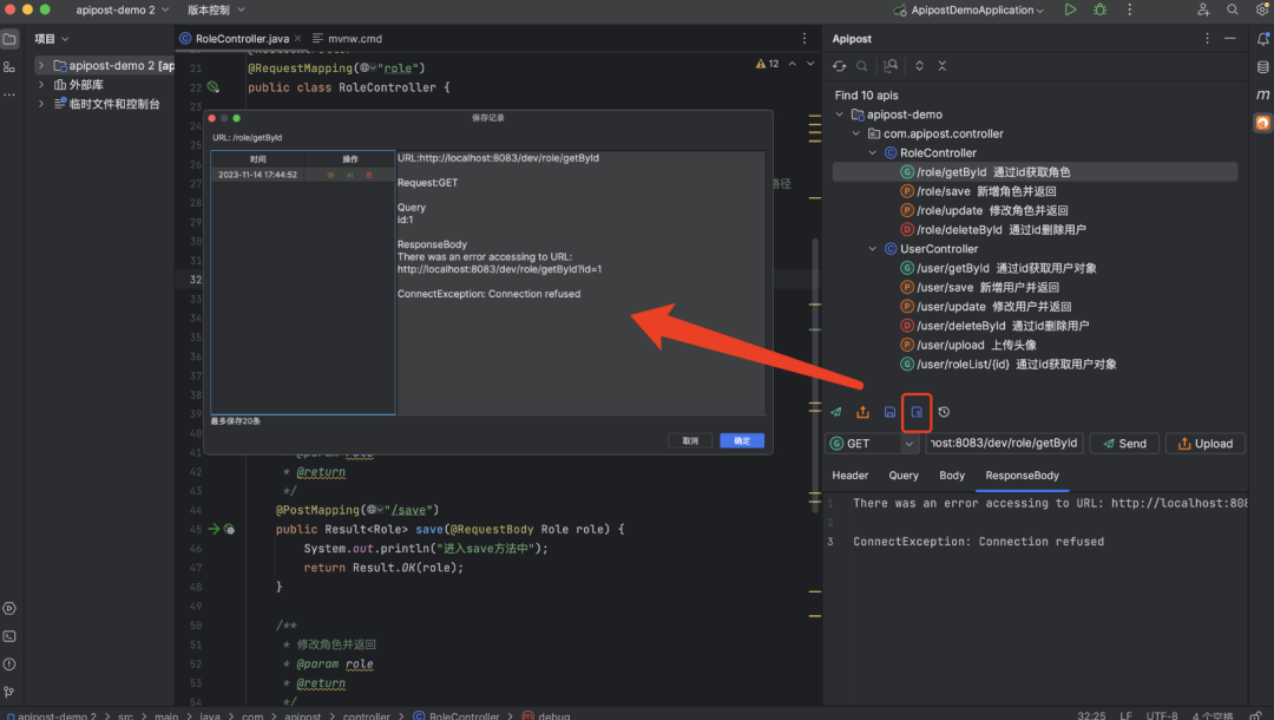 调试接口时某些接口返回数据需要记录,本次更新新增保存功能,发送请求后点击保存可保存该次的发送详情和返回详情。