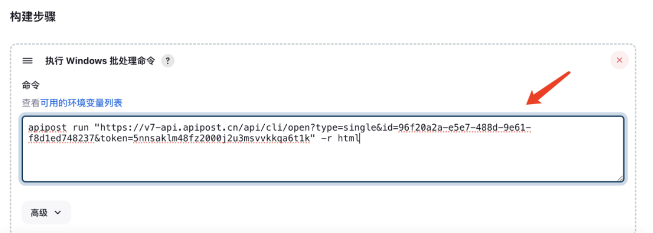 Step3:在命令窗口中,输入Apipost的执行命令,设置完成后,点击保存