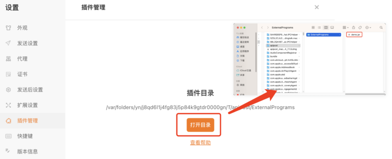 在「系统设置」—「插件管理」中打开目录将要执行的脚本文件拖入到文件夹下