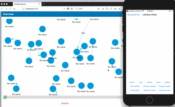 另外我们还开发了一个带有录屏并且可以动态查看应用程序中所有节点和边的调试工具,后期也会开源。开发中的工具是这样的: