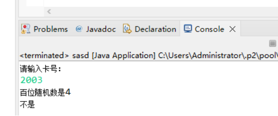 7。输入一个4位会员卡号,如果百位数字是随机数,就输出是幸运会员,否则就输出不是.