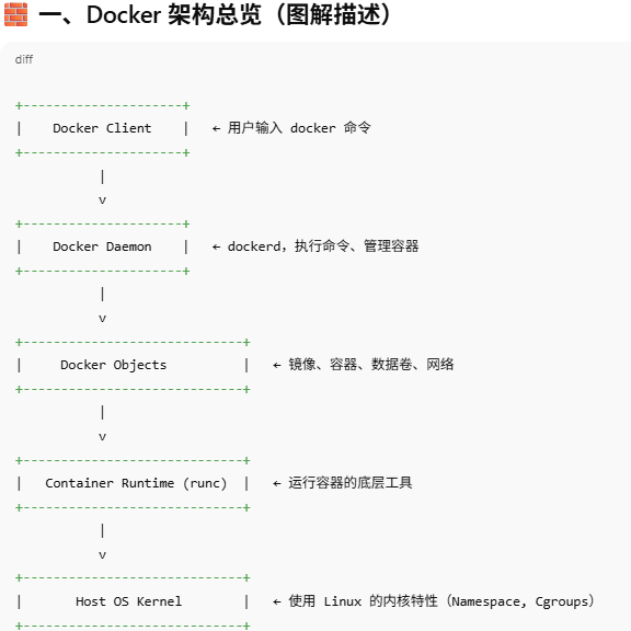 1.--Docker (Docker engine) 是容器引擎,核心功能是创建和管理容器,原生运行在Linux系统,提供命令行工具(docker CLI)和后台服务(Docker Daemon)
