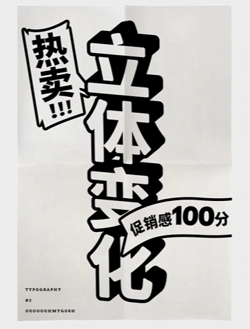 我们也可以基于字形对主体文字进行大幅度的创作,比如将它进行立体化的处理,他能够给画面带来强烈的促销感(如上图)
