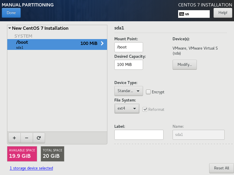 (5)手动进行分区,可分出/boot, swap, / 等几个分区