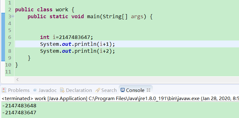当int型整数超出自己范围时,会从它的最小值重新开始,例如: