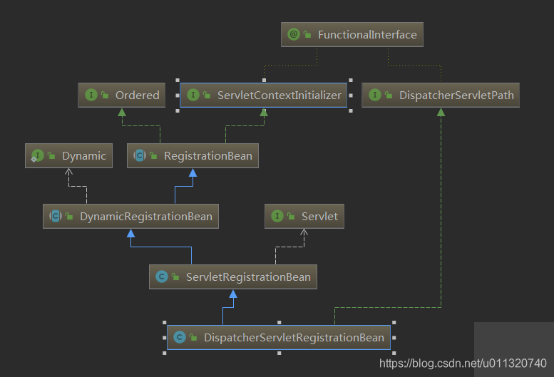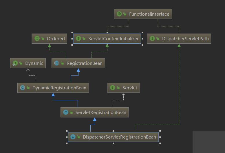 我们瞧下DispatcherServletRegistrationBean的继承实现关系