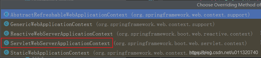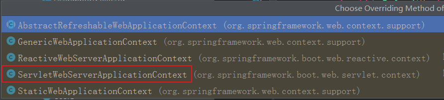 继承AbstractApplicationContext的有如下几个类,其中一个可以大胆猜想ServletWebServerApplicationContext是个不简单的东西