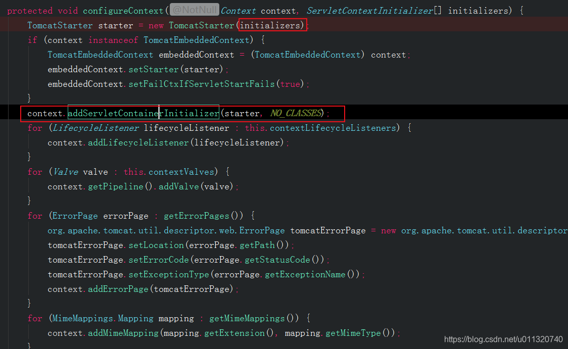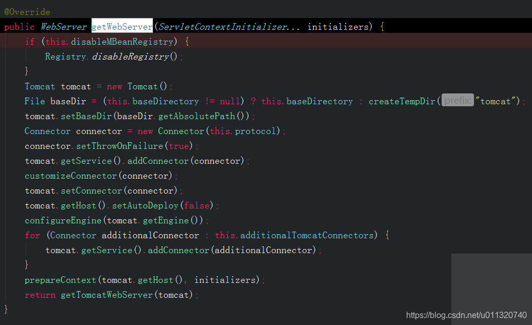 我们接着进到TomcatServletWebServerFactory.prepareContext方法,下面是部分代码