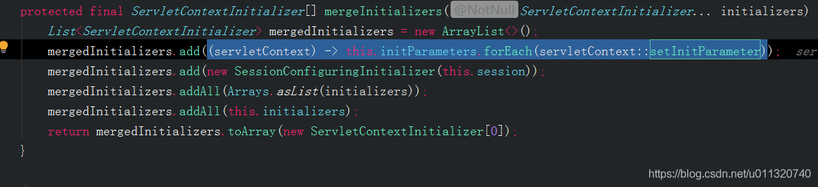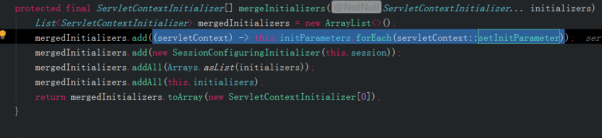 ServletContextInitializer[] initializersToUse = mergeInitializers(initializers);
