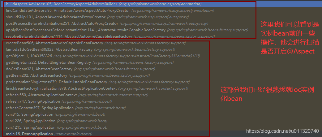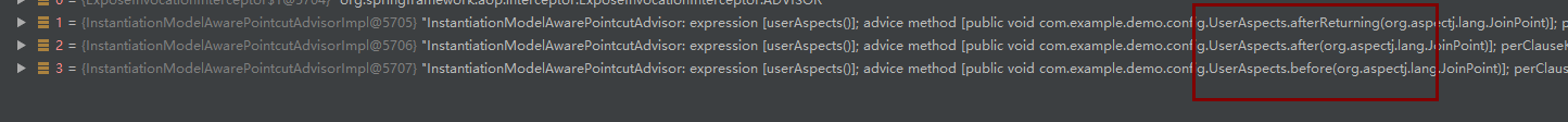 就这样我们在实例化一个bean的时候例如实例化UserA前的时候调用AbstractAutowireCapableBeanFactory.resolveBeforeInstantiation扫描出所有advisor放入缓存中