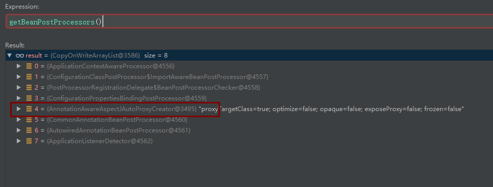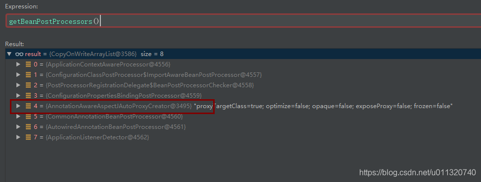 这里获取所有后置处理器,里面就有