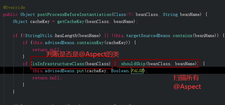该类继承AbstractAutoProxyCreator,然后调用AbstractAutoProxyCreator.postProcessBeforeInstantiation