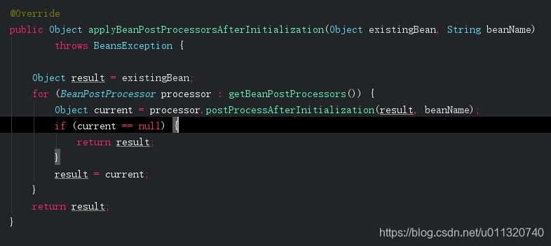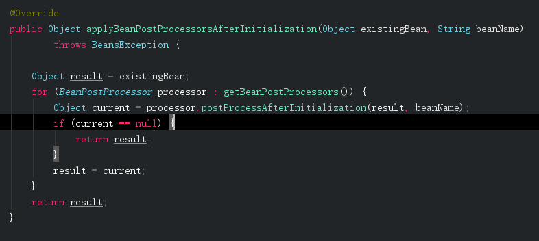 AbstractAutowireCapableBeanFactory.applyBeanPostProcessorsAfterInitialization