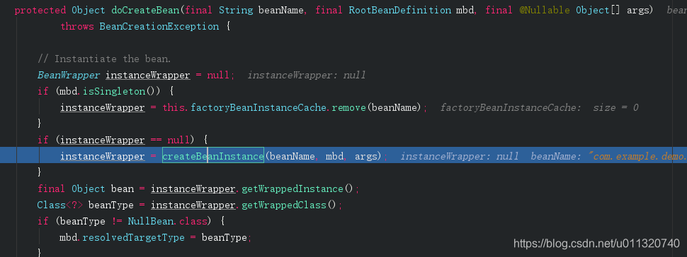 我们进去AbstractAutowireCapableBeanFactory.createBean