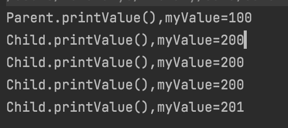 System.out.println("Parent.printValue(),myValue="+myValue);