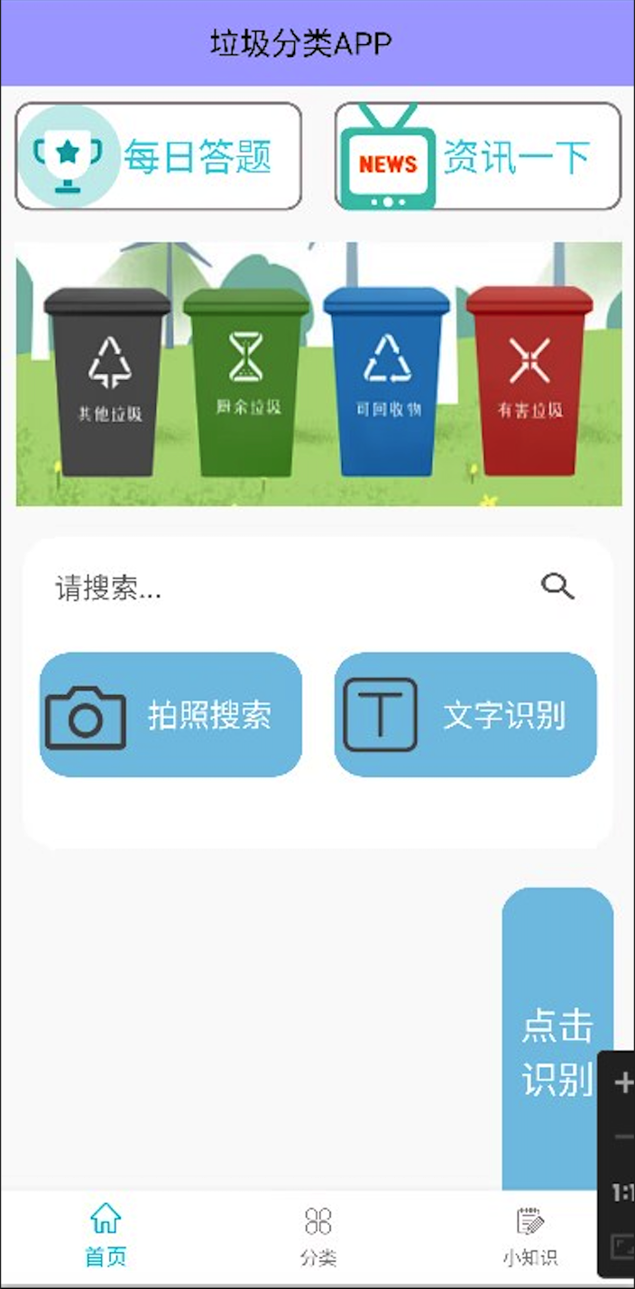 <?xml version="1.0" encoding="utf-8"?> <LinearLayout xmlns:android="http://schemas.android.com/apk/res/android" xmlns:tools="http://schemas.android.com/tools" android:layout_width="match_parent" android:layout_height="wrap_content" tools:context=".Fragment.HomeFragment" android:orientation="vertical"> <LinearLayout android:layout_width="match_parent" android:layout_height="wrap_content"> <LinearLayout android:layout_margin="10dp" android:layout_width="0dp" android:layout_height="wrap_content" android:layout_weight="1" android:id="@+id/ll_dati" android:background="@drawable/circle1_bg"> <ImageView android:layout_width="70dp" android:layout_height="70dp" android:background="@drawable/dati1"/> <TextView android:gravity="center_vertical" android:layout_width="wrap_content" android:layout_height="70dp" android:text="姣忔棩绛旈" android:textSize="24sp" android:textColor="#3DD0E3"/> </LinearLayout> <LinearLayout android:id="@+id/ll_zixun" android:layout_margin="10dp" android:layout_width="0dp" android:layout_height="wrap_content" android:layout_weight="1" android:background="@drawable/circle1_bg"> <ImageView android:layout_width="70dp" android:layout_height="70dp" android:background="@drawable/news1"/> <TextView android:gravity="center_vertical" android:layout_width="wrap_content" android:layout_height="70dp" android:text="璧勮涓€涓? android:textSize="24sp" android:textColor="#3DD0E3"/> </LinearLayout> </LinearLayout> <LinearLayout android:layout_width="match_parent" android:layout_height="wrap_content"> <ImageView android:layout_margin="10dp" android:layout_width="match_parent" android:layout_height="170dp" android:background="@drawable/laji" /> </LinearLayout> <LinearLayout android:layout_marginTop="10dp" android:layout_gravity="center" android:layout_width="380dp" android:layout_height="200dp" android:background="@drawable/circle_bg" android:orientation="vertical"> <LinearLayout android:layout_width="match_parent" android:layout_height="wrap_content" android:orientation="horizontal"> <EditText android:id="@+id/et_search" android:layout_marginTop="20dp" android:layout_marginLeft="20dp" android:layout_width="290dp" android:layout_height="wrap_content" android:background="@null" android:hint="璇锋悳绱?.."/> <ImageView android:id="@+id/iv_search" android:layout_marginTop="10dp" android:layout_marginLeft="20dp" android:layout_gravity="center" android:layout_width="30dp" android:layout_height="wrap_content" android:background="@drawable/ic_baseline_search_24"/> </LinearLayout> <LinearLayout android:layout_marginTop="20dp" android:layout_width="match_parent" android:layout_height="wrap_content" android:orientation="horizontal"> <LinearLayout android:layout_width="0dp" android:layout_weight="1" android:layout_height="100dp" > <LinearLayout android:id="@+id/ll_camera" android:layout_marginLeft="10dp" android:layout_gravity="center_vertical" android:layout_width="170dp" android:layout_height="80dp" android:orientation="horizontal" android:background="@drawable/btn_bg" > <ImageView android:layout_gravity="center_vertical" android:layout_width="60dp" android:layout_height="60dp" android:background="@drawable/camera"/> <TextView android:layout_marginLeft="10dp" android:gravity="center_vertical" android:textSize="20sp" android:textColor="@color/white" android:layout_width="wrap_content" android:layout_height="80dp" android:text="鎷嶇収鎼滅储"/> </LinearLayout> </LinearLayout> <LinearLayout android:layout_width="0dp" android:layout_height="100dp" android:layout_weight="1" > <LinearLayout android:id="@+id/ll_wenzi" android:layout_marginLeft="10dp" android:layout_gravity="center_vertical" android:layout_width="170dp" android:layout_height="80dp" android:orientation="horizontal" android:background="@drawable/btn_bg" > <ImageView android:layout_gravity="center_vertical" android:layout_width="60dp" android:layout_height="60dp" android:background="@drawable/wenzi"/> <TextView android:layout_marginLeft="10dp" android:gravity="center_vertical" android:textSize="20sp" android:textColor="@color/white" android:layout_width="wrap_content" android:layout_height="80dp" android:text="鏂囧瓧璇嗗埆"/> </LinearLayout> </LinearLayout> </LinearLayout> </LinearLayout> <LinearLayout android:layout_width="match_parent" android:layout_height="wrap_content" android:orientation="horizontal"> <ImageView android:layout_width="0dp" android:layout_height="250dp" android:layout_weight="3" android:id="@+id/iv_image" /> <LinearLayout android:layout_width="0dp" android:layout_height="250dp" android:layout_weight="1" android:orientation="vertical" android:padding="15dp"> <Button android:id="@+id/btn_recognize" android:layout_marginTop="10dp" android:layout_width="wrap_content" android:layout_height="0dp" android:layout_weight="1" android:text="鐐瑰嚮 璇嗗埆" android:textSize="24sp" android:textColor="@color/white" android:background="@drawable/btn_bg"/> </LinearLayout> </LinearLayout> </LinearLayout>