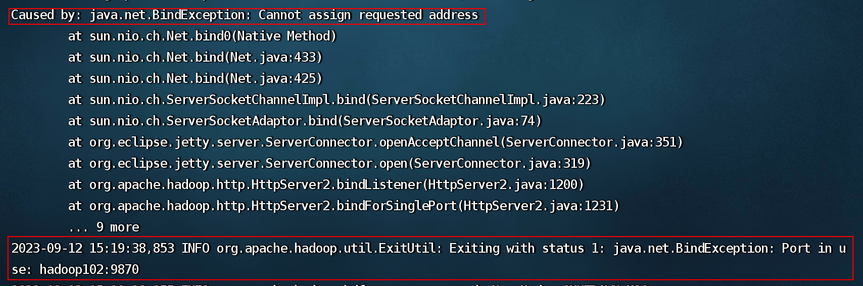 部分log日志如上,其中一个是cannot assign requested address,还有一个是端口被占用。