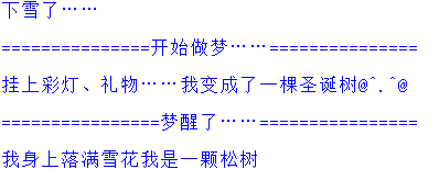 print('挂上彩灯、礼物……我变成了一棵圣诞树@^.^@')