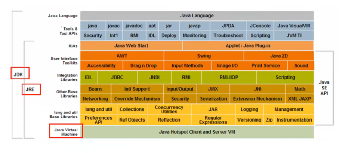 JDK:Java Development Kit(java开发者工具)JRE:Java Runtime Environment(java运行时环境)JVM:JAVA Virtual Machine(java虚拟机)
