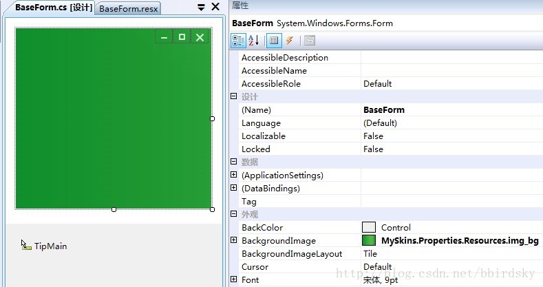 将BackgroundImage设置为img_bg,并将DoubleBuffered双缓冲设置为true。