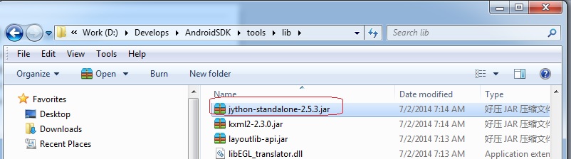 - Step 1: 找到Jython解析器的Jar包并解压(该jar包应该能够在你的SDK\tools\lib以下找到)